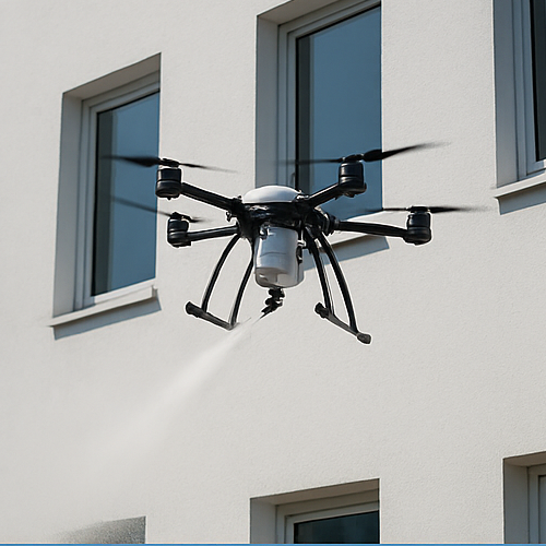 Fassadenreinigung mit Drohne entfernt Schmutz schnell, sicher und ohne Gerüst – schonend, effizient und perfekt für hohe oder schwer erreichbare Flächen.