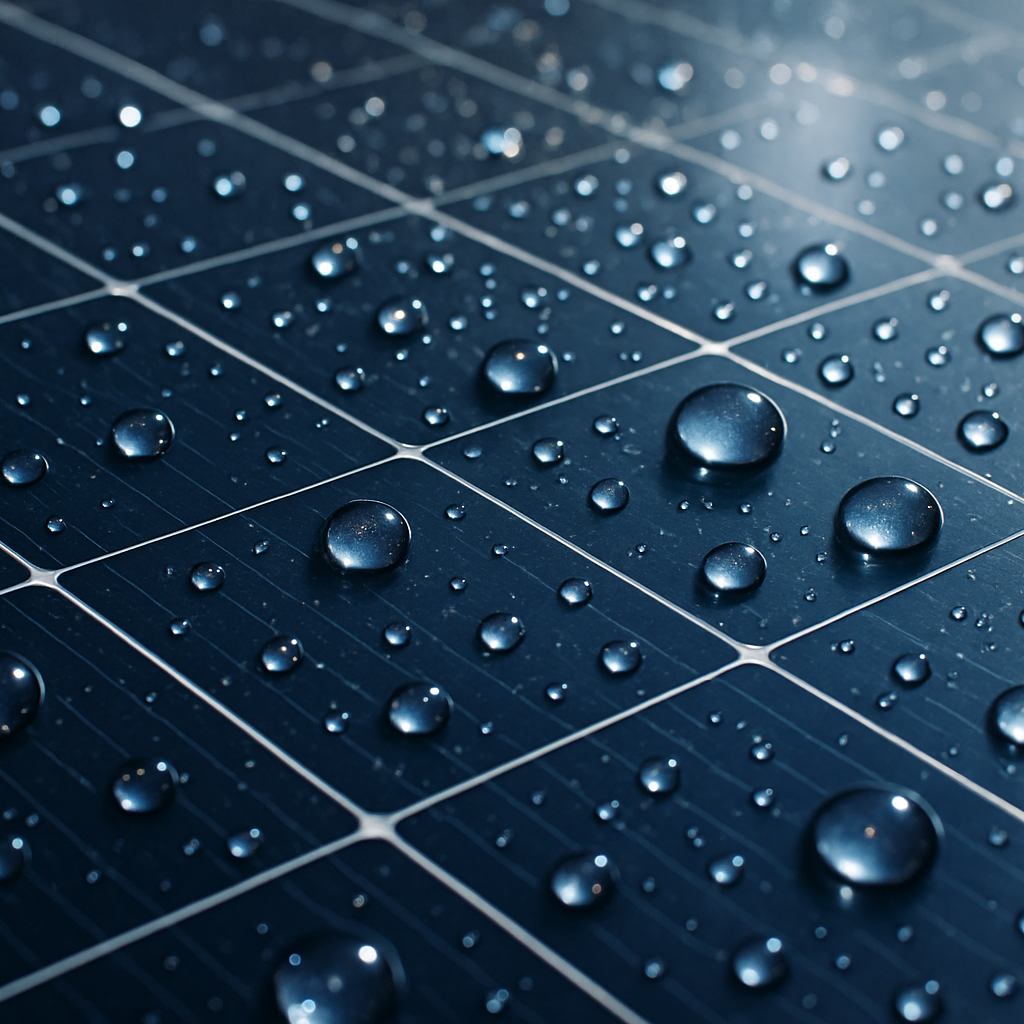 Unsere Nano-Versiegelung schützt Ihre Solaranlage vor Schmutz, Staub und Ablagerungen. Durch die glatte, wasserabweisende Oberfläche bleibt die Anlage länger sauber – Regen spült Verunreinigungen einfach ab.